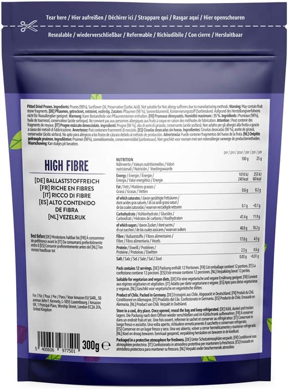 Prunes (98%), Sunflower Oil, Preservative (Sorbic Acid)
