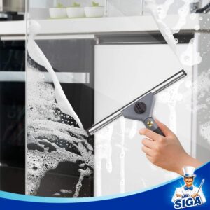 Consisted of sturdy rectangular caddy, durable ABS transparent cover and easy toting, perfect for storing cleaning products and supplies. Detachable rack inside the caddy is designed for storing microfiber window scrubber particularly, while the outside hooks are for hanging window squeegee. Holds up to 15 L water to assist your daily household cleaning. 12 inch microfiber window scrubber attracts fine dust and absorbs water easily, it’s detachable and machine washable. Flexible yet durable 12 inch silicone window squeegee easily removes soap scum, water drops and limescale but leaves no streaks. Stainless steel clip and durable silicone blade ensure much longer lifespan than rubber squeegee. 2 in 1 multi-purpose scrub brush includes a scrub brush and a small angled grout brush snapped in the handle. Durable PP bristle is great for cleaning bathroom, kitchen, tiles, garage, they are firm enough to stand up after sustained use. The small angled brush can be taken out easily for separate use, which is ideal for cleaning narrow spaces and crevices. Thick absorbent frost teal microfiber cloth captures dust, dirt and grime like a magnet, it soaks up water from countertop and tables quickly without lint or streaks left behind, can be widely used for worktops, appliances to kitchens, bathrooms; And another ultra fine sand green microfiber cloth ensures excellent performance especially in cleaning glass, window, mirror, lens, stemwares and leaves no streaks or lint on surfaces. Adjustable nozzle of spray bottle can be switched easily from mist, stream or to off with just a simple turn. There are measurements on the bottle which make it easier to see how much contents remain inside. MR.SIGA’s mission: Make your housework easier, and make the world cleaner. If you’re not happy about the product, you’re covered by a full refund. Please do not hesitate to contact us with any questions you may have, we are here for support and advice!