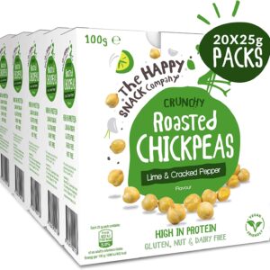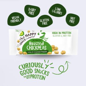 Slow roasted Chickpeas deliciously crunchy and lightly seasoned with zingy lime and a hint of cracked pepper. A high protein healthy tasty snack perfect for staving off the afternoon slump. Free of 13 declared Allergens. Gluten, Nut and Dairy free. Low in sugar and saturated fat.